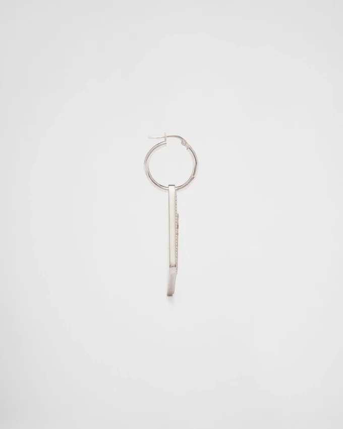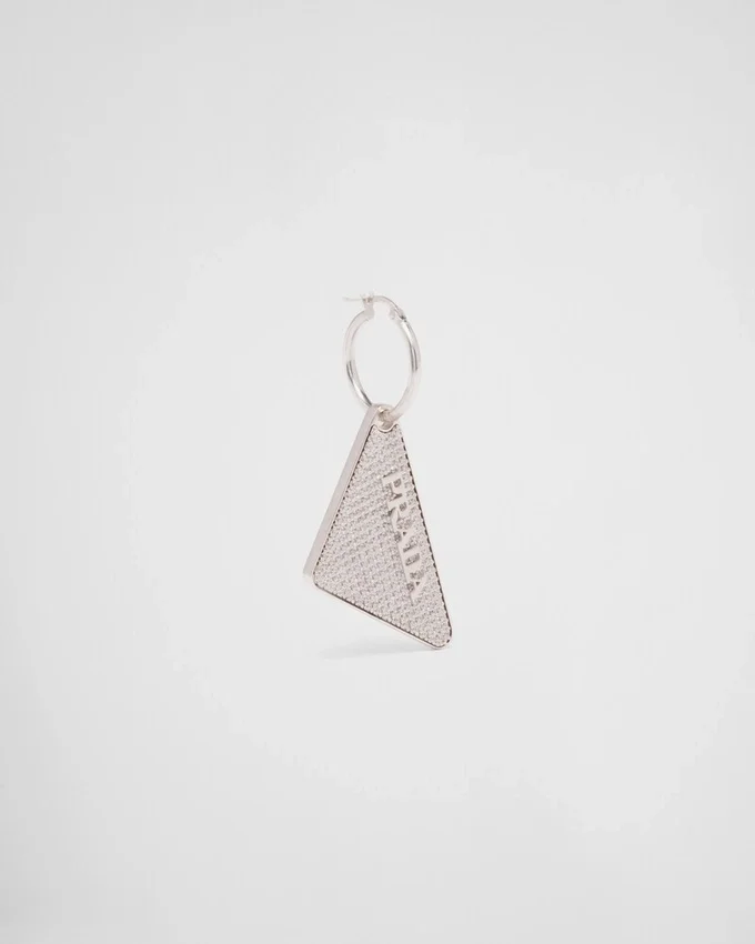 Prada Plays with Its Most Iconic Shape, the Triangle, Which Results in Precious New Details. The Geometric Logo Illuminated with Zircons Defines the Pendant of This Single Earring Made of 925 Sterling Silver with a Palladium Finish.