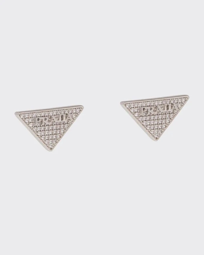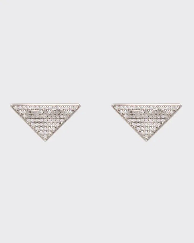 The Triangle Logo Illuminated with Zircons Defines the Pendant of These Earrings Made of 925 Sterling Silver with a Palladium Finish. The Iconic and Sleek Geometric Detail is the Protagonist of a Jewelry Line Made of 925 Sterling Silver.