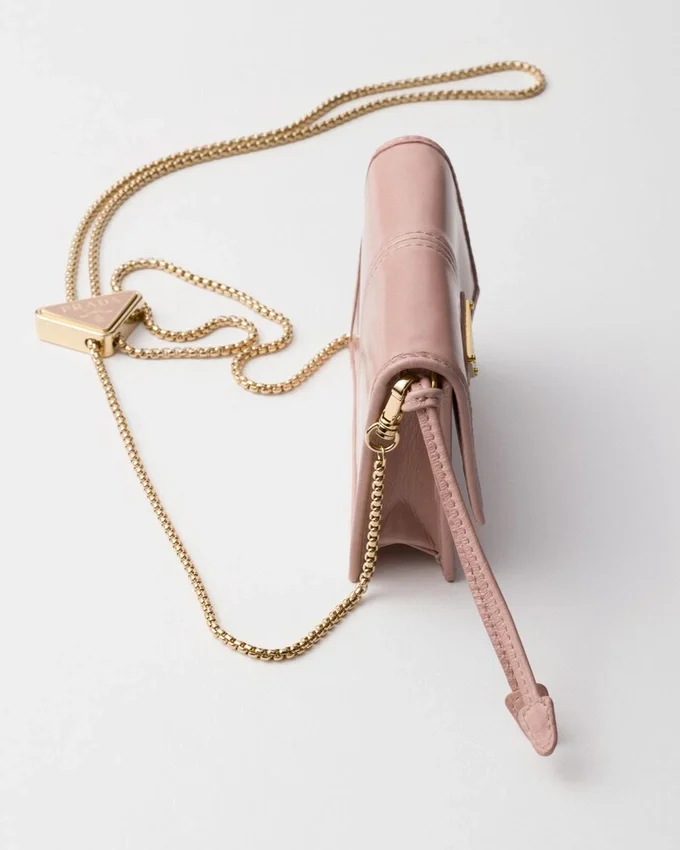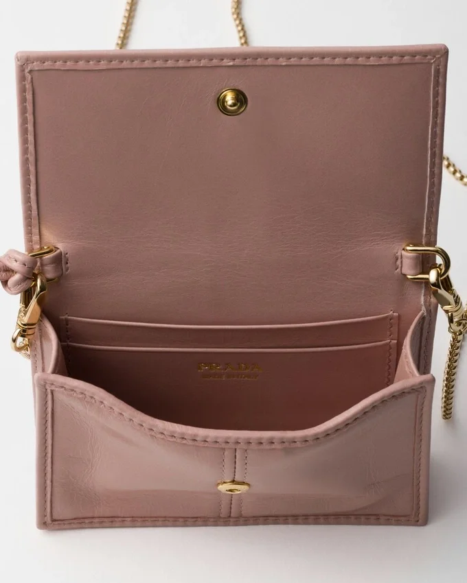 A Refined, Understated Accessory, This Card Holder Boasts a Sleek Design and Premium Materials. The Enameled Metal Triangle Logo Adds a Touch of Sophistication, While the Removable Chain Shoulder Strap Provides Versatility.