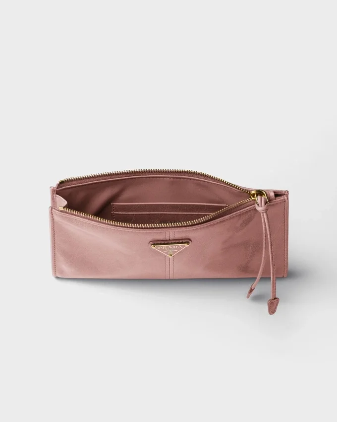 This Pouch Features a Sleek, Sophisticated Design Crafted from Soft Leather and Adorned with the Enamelled Metal Triangle Logo.