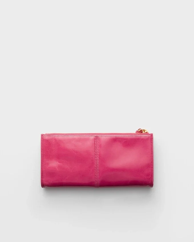 This Pouch Features a Sleek, Sophisticated Design Crafted from Soft Leather and Adorned with the Enamelled Metal Triangle Logo.