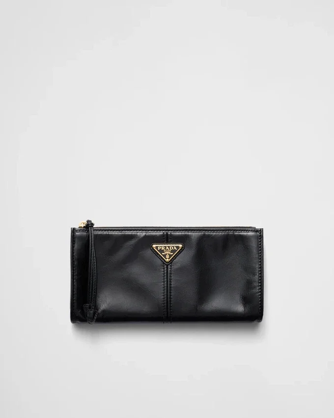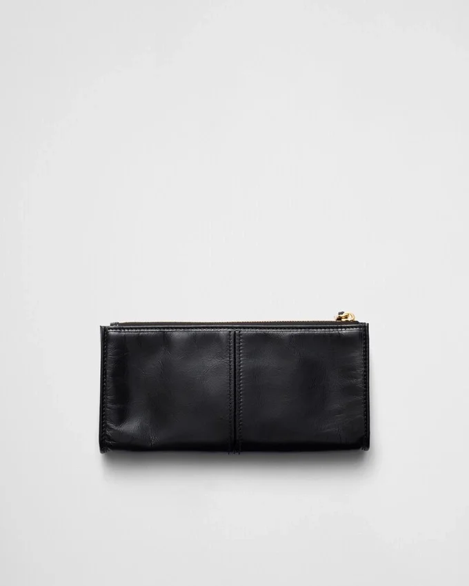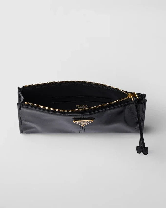 This Pouch Features a Sleek, Sophisticated Design Crafted from Soft Leather and Adorned with the Enamelled Metal Triangle Logo.