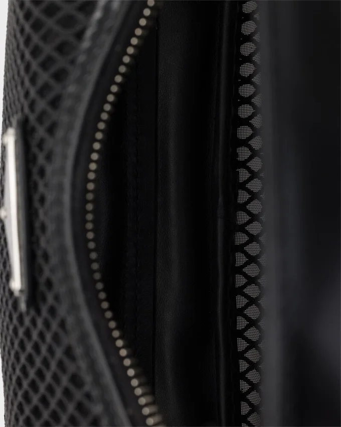 New Lightness Transforms the Iconic Silhouette of the Prada Re-Edition 2005 Bag. The Unique Style is Made of Mesh Fabric and Brushed Leather. The Combination of Materials Reflects the Dual Essence of the Bag, Underlined by the Sporty Shoulder Strap That Alternates, Depending on the Occasion, with an Elegant Chain Handle.