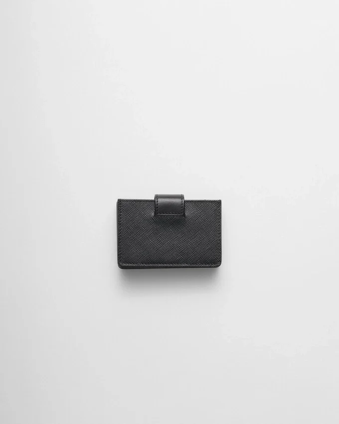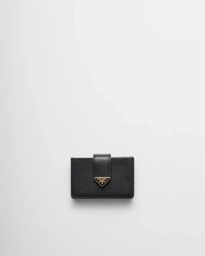 Defined by Sophisticated and Precious Allure, This Card Holder Presents a Mix of Details in Smooth and Saffiano Leather, an Iconic Prada Material with a Crosshatch Texture. This Accessory with a Minimalist Design is Embellished with the Brand’s Iconic Enameled Triangle Logo That Adorns the Closure.