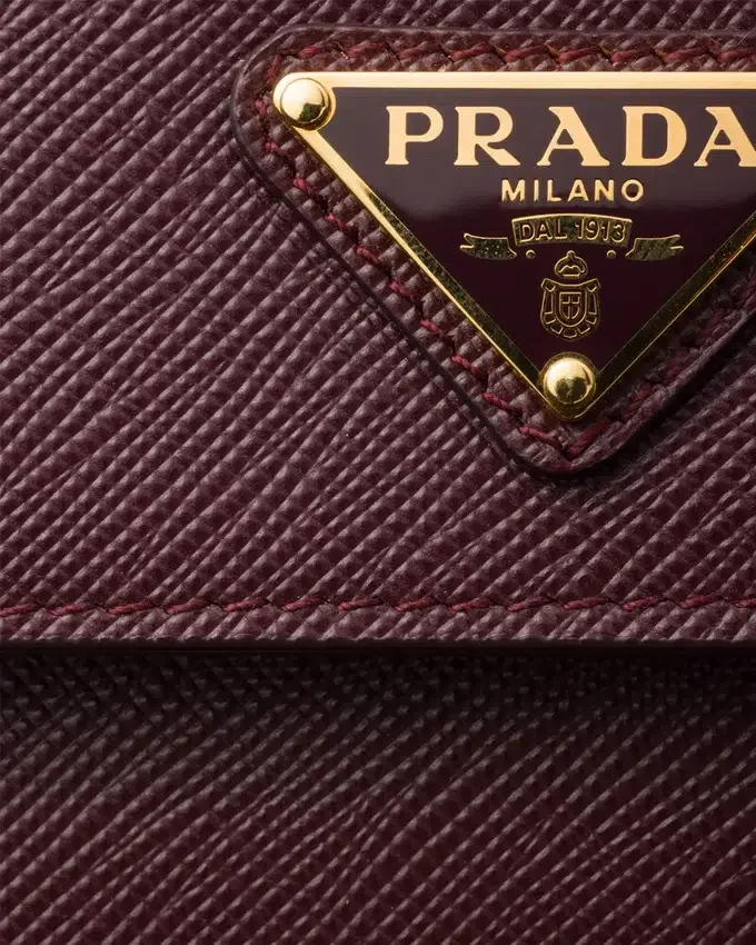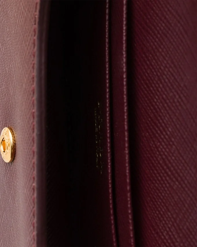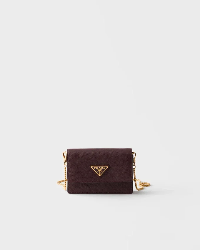 This Sophisticated and Versatile Card Holder with Flap Has a Removable Chain Shoulder Strap That Adds a Luxurious Touch and Allows It to Be Worn in Different Ways. The Metal Lettering Logo Decorates the Front of This Accessory Made of Saffiano Leather, the Iconic Material of the Brand Defined by Its Crosshatch Texture and Waxed Finish.