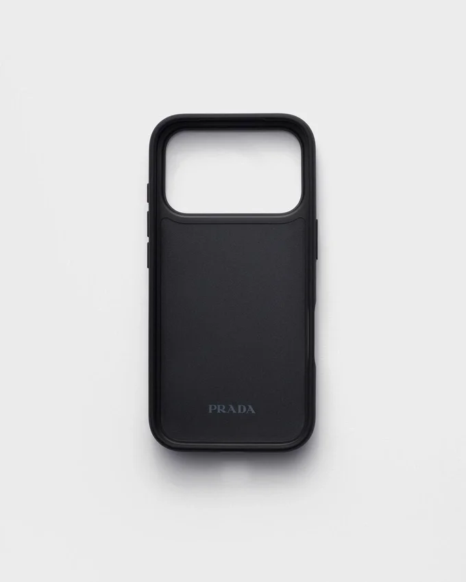 This Saffiano Leather Case for the Iphone 17 Pro Has a Sleek and Sophisticated Design Decorated with the Emblematic Enameled Metal Triangle Logo.