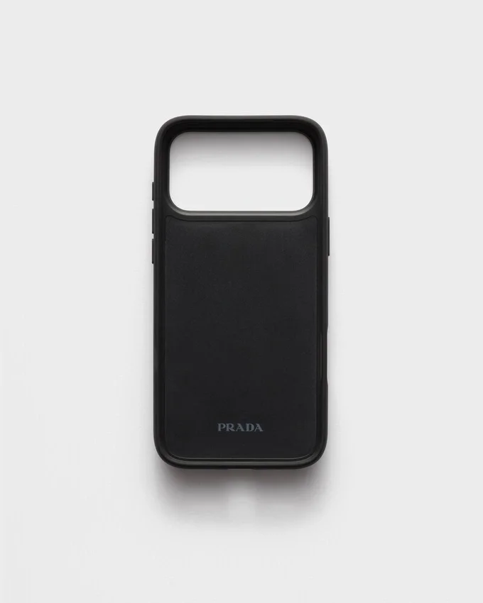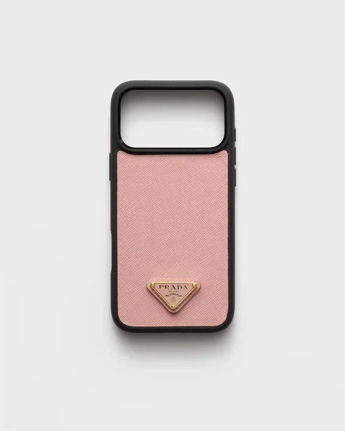This Saffiano Leather Case for the Iphone 17 Pro Has a Sleek and Sophisticated Design Decorated with the Emblematic Enameled Metal Triangle Logo.