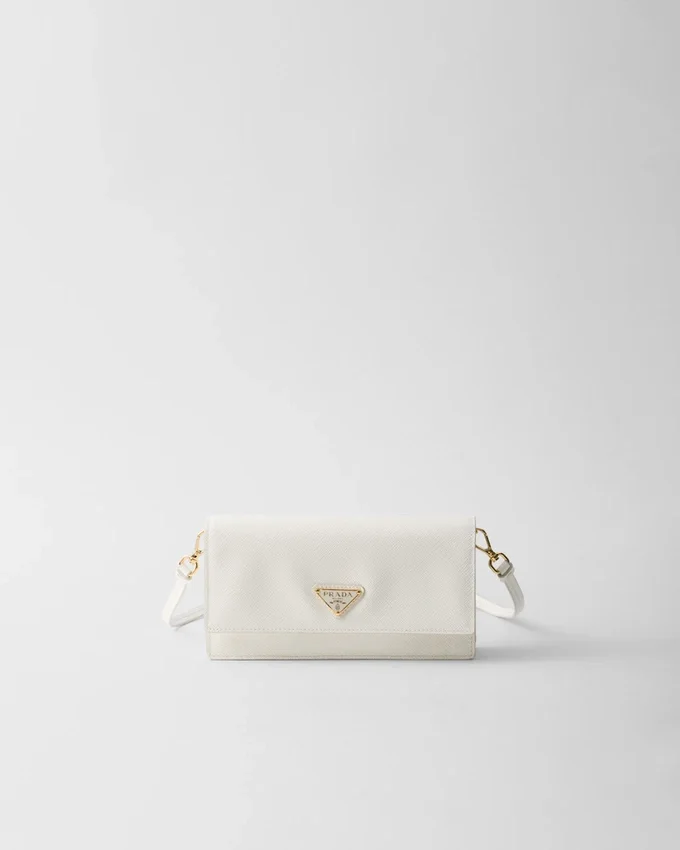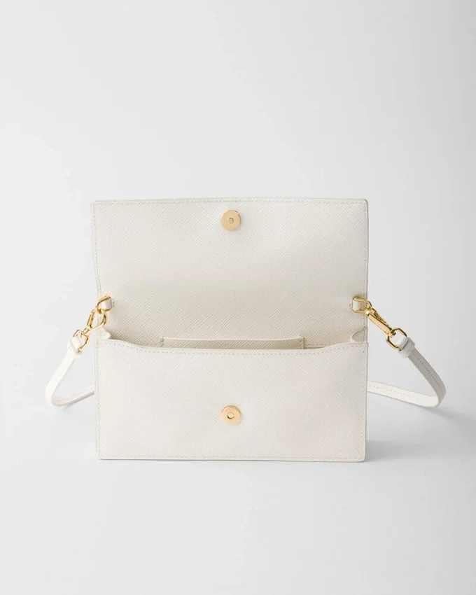 Saffiano Leather, an Emblematic Material of Prada Collections, Stands out for Its Crosshatch Pattern with Waxed Finish That Gives Each Design Versatile, Elegant Charm. This Mini-Bag Has a Sleek Yet Refined Geometric Shape, Illuminated by the Metal Hardware and Decorated with the Iconic Enameled Metal Triangle Logo.
