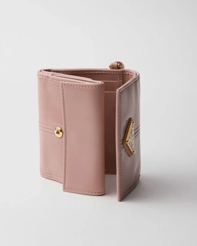 This Small Leather Wallet, Adorned with the Enamelled Metal Triangle Logo, Exudes Modern Sophistication. Its Refined Details and Fine Craftsmanship Make It a Timeless Accessory.