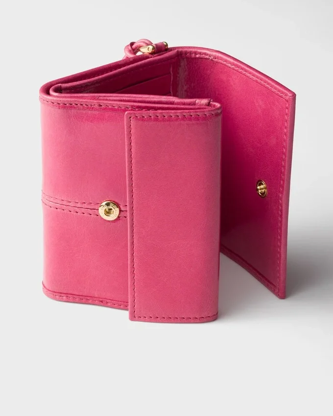 This Small Leather Wallet, Adorned with the Enamelled Metal Triangle Logo, Exudes Modern Sophistication. Its Refined Details and Fine Craftsmanship Make It a Timeless Accessory.