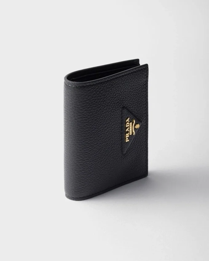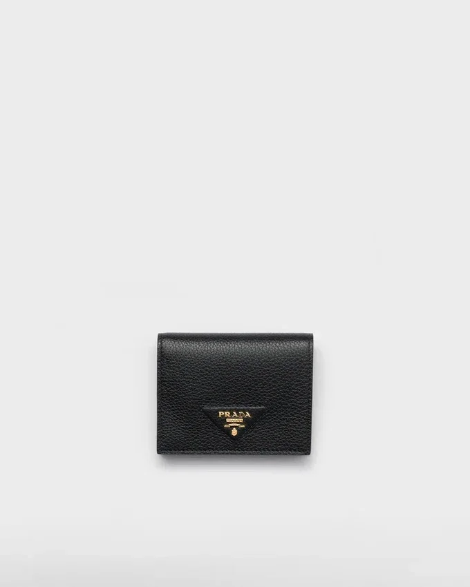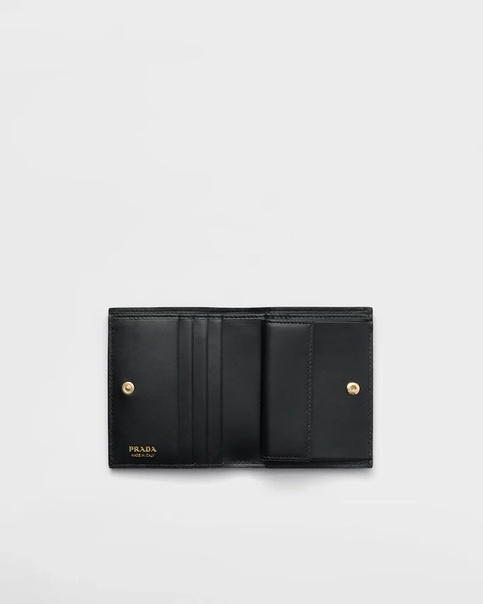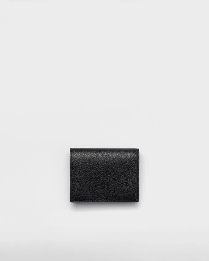 This Small Leather Wallet Has Several Internal Pockets and Card Slots. The Accessory with Snap Closure is Decorated with the Metal Lettering Logo.