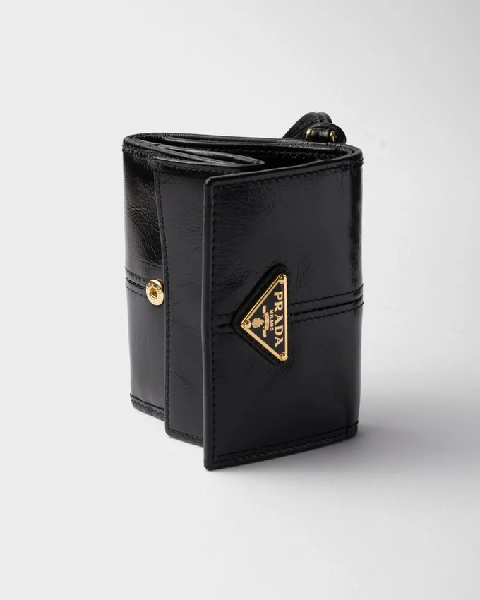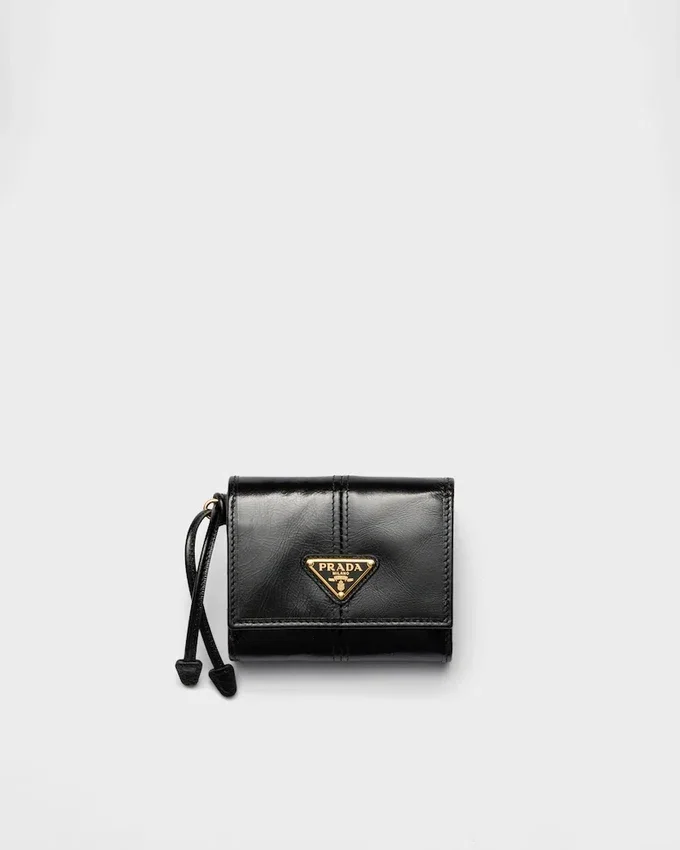 This Small Leather Wallet, Adorned with the Enamelled Metal Triangle Logo, Exudes Modern Sophistication. Its Refined Details and Fine Craftsmanship Make It a Timeless Accessory.