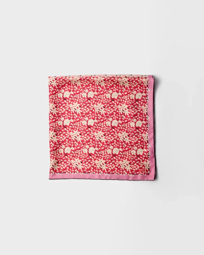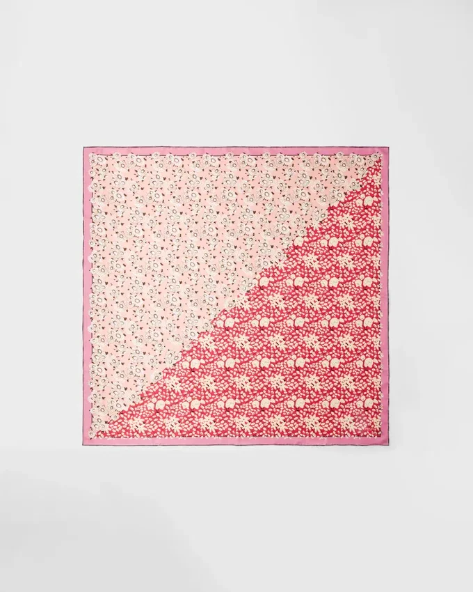 Double Match Prints Create an Unexpected Harmony Between Contrasting Graphics, Recalling the Duality Inherent in the Prada Aesthetic. Two Floral Motifs Embellish This Refined Silk Twill Scarf.