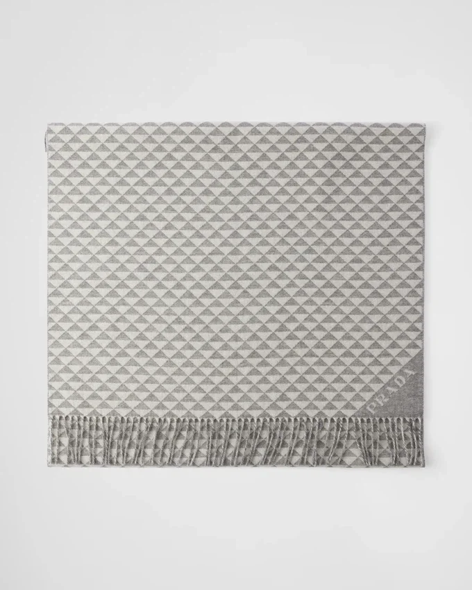 This Modern and Versatile Wool and Cashmere Stole Has a Reversible Design Featuring the Iconic Geometric Symbole Motif. The Jacquard Logo, Repeated on Opposite Corners of the Accessory, Adds a Distinctive Signature Touch to the Stole.