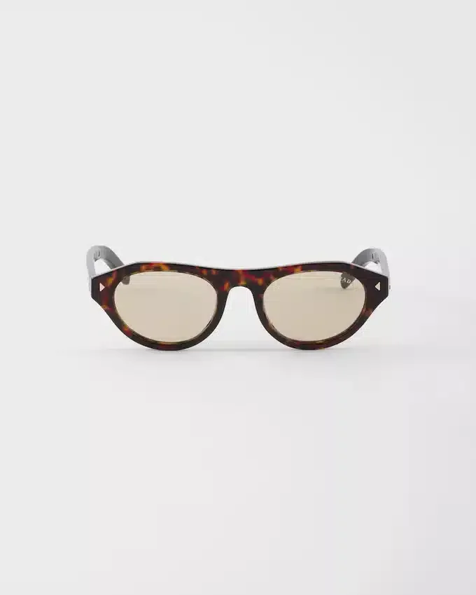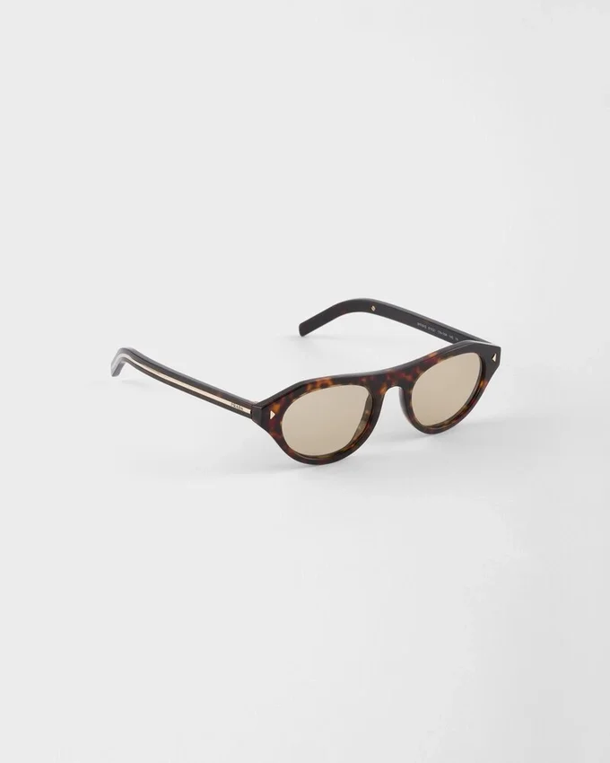 A Sleek Aesthetic Meets the Refined Touch of Details in These New Prada Sunglasses. The Acetate Frame Front Features Sophisticated Triangular Rivets While the Temples Highlight the Iconic Metal Element Enriched with the Prada Lettering Logo.