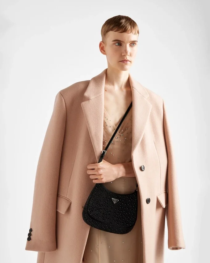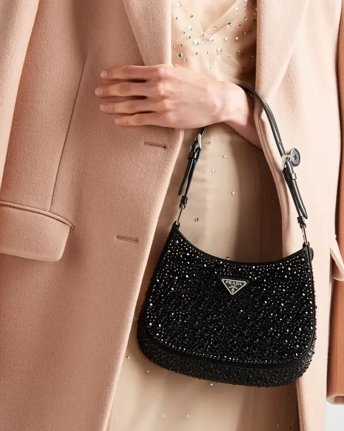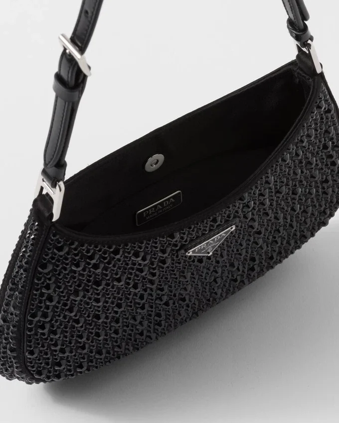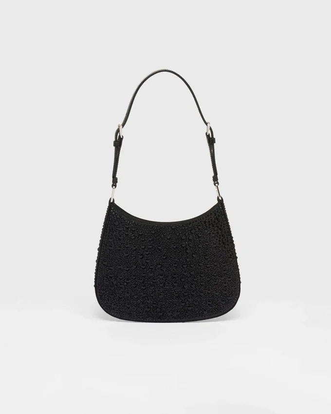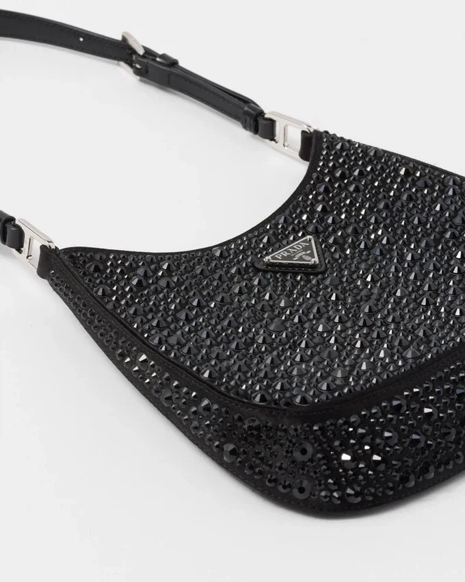 Feminine, Elegant and Modern, the Prada Cleo Bag is Made of Satin and Embellished with Luminous Crystals of Different Sizes That Give the Bag Refined Charm. The Sinuous Shape That Recalls Archive Styles Makes the Accessory Iconic.