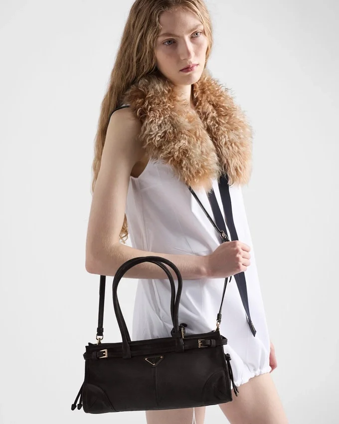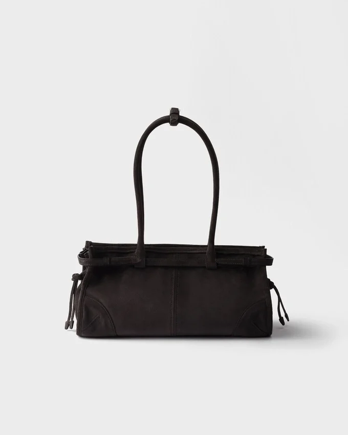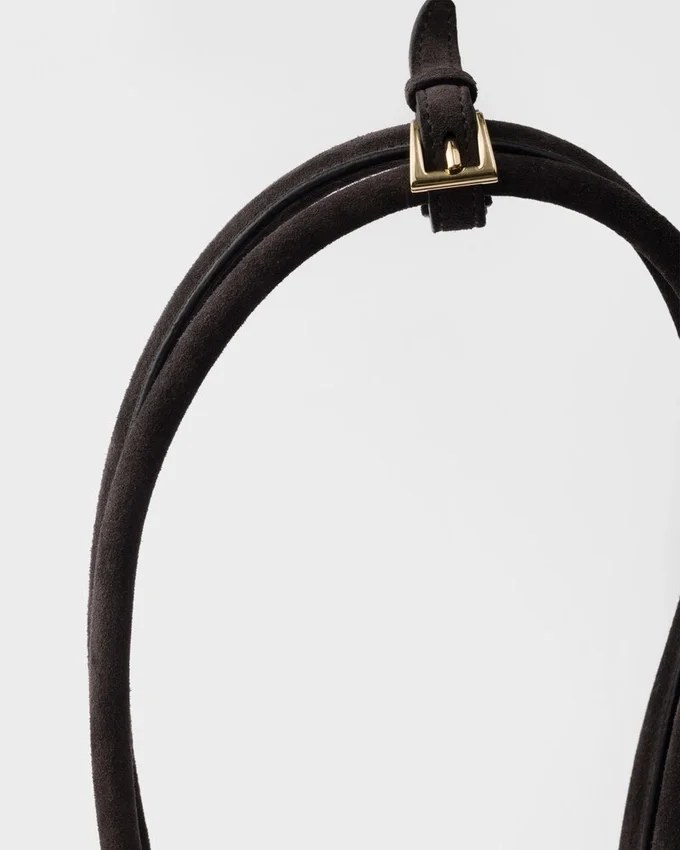 Pragmatic, Contemporary Elegance Defines This Suede Handbag. The Versatile Design is Enhanced by Elegant, Flattering Straps That Enhance the Refined Simplicity of the Style.