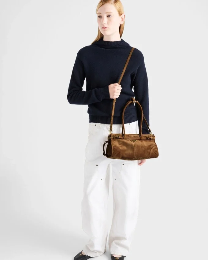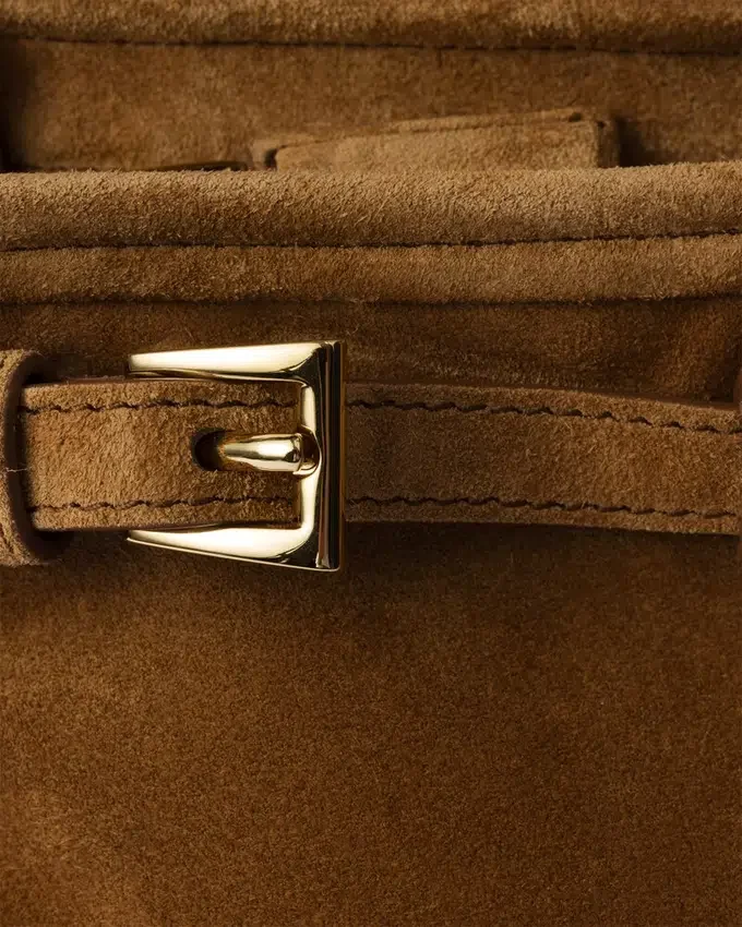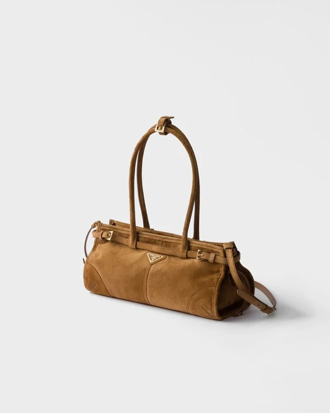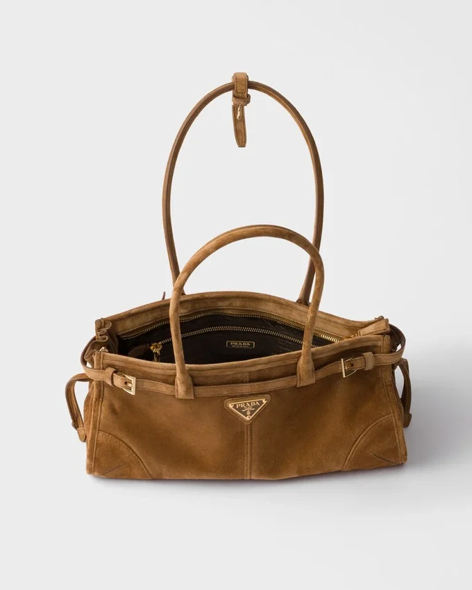 Pragmatic, Contemporary Elegance Defines This Suede Handbag. The Versatile Design is Enhanced by Elegant, Flattering Straps That Enhance the Refined Simplicity of the Style.
