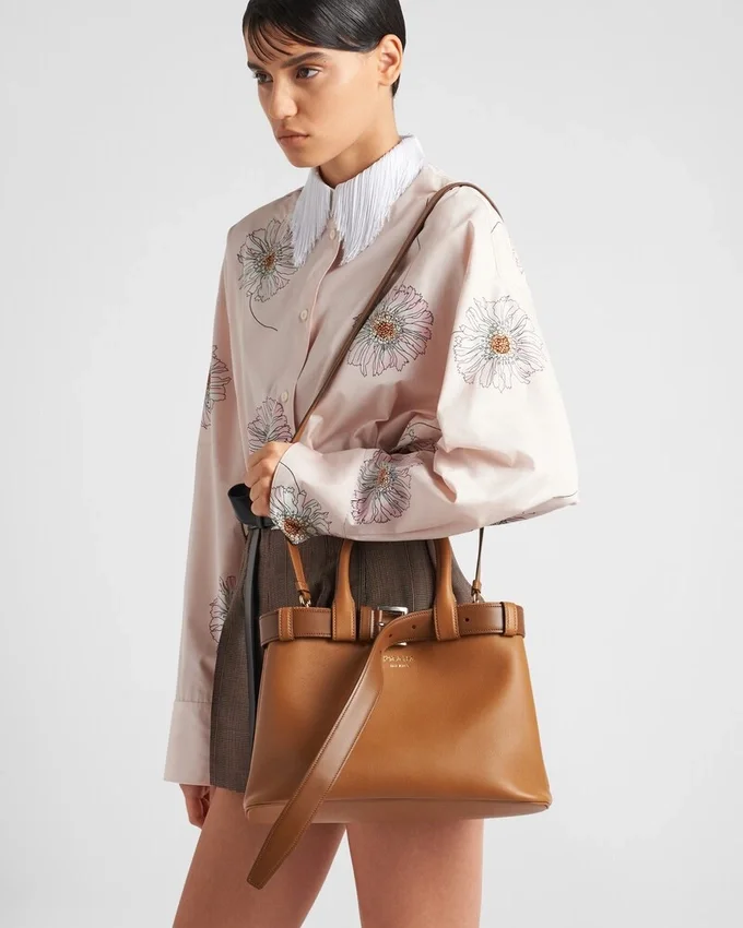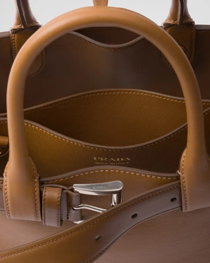 Clean Lines and Refined Elements Tell the Story of Prada’s Dual Aesthetic That Moves Between Simplicity and Detail, Functionality and Elegance. This Leather Bag with Nappa Interior Summarizes the Stylistic Codes of the Brand in a Pragmatic Yet Sophisticated Design. The Silhouette is Characterized by a Multifaceted Soul, Expressed by the Interchangeable Belt That Enriches the Accessory with a Unique and Contemporary Touch. The Lettering Logo, Embossed in 22 Karat Gold Leaf, Decorates the Modern, Versatile Style.