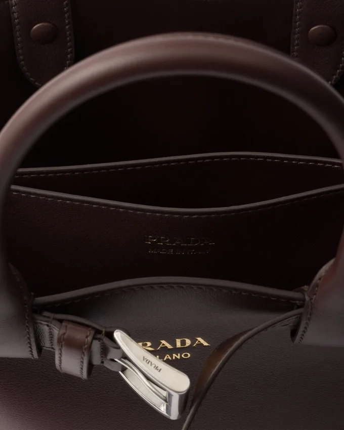 Clean Lines and Refined Elements Tell the Story of Prada’s Dual Aesthetic That Moves Between Simplicity and Detail, Functionality and Elegance. This Leather Bag with Nappa Interior Summarizes the Stylistic Codes of the Brand in a Pragmatic Yet Sophisticated Design. The Silhouette is Characterized by a Multifaceted Soul, Expressed by the Interchangeable Belt That Enriches the Accessory with a Unique and Contemporary Touch. The Lettering Logo, Embossed in 22 Karat Gold Leaf, Decorates the Modern, Versatile Style.