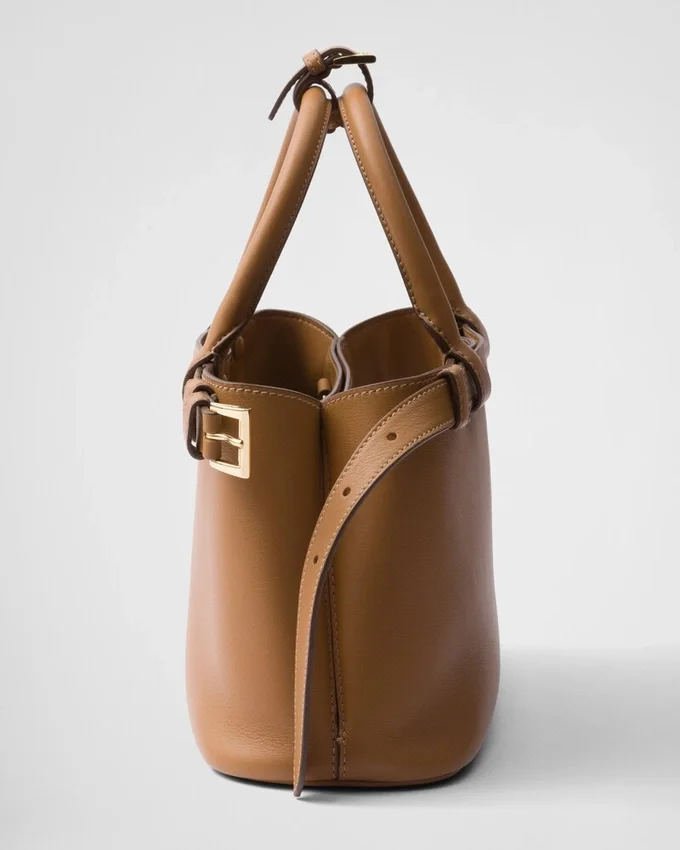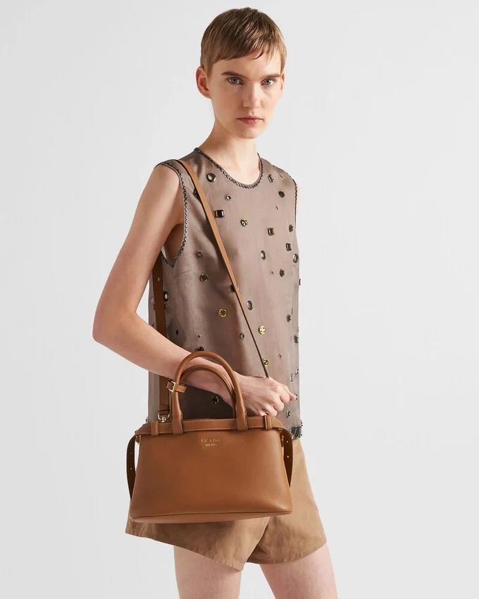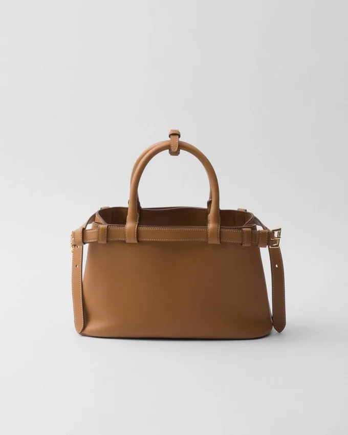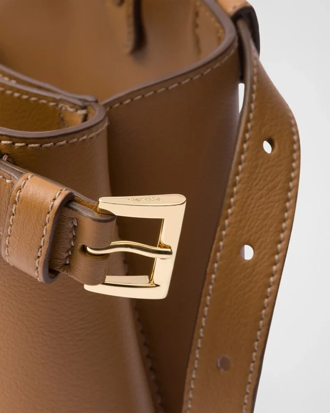 Clean Lines and Refined Elements Tell the Story of Prada’s Dual Aesthetic That Blends Simplicity and Detail, Functionality and Elegance. This Small Leather Bag Summarizes Prada’s Stylistic Codes in a Pragmatic Yet Sophisticated Design, with Nappa Leather Interior Characterized by Three Compartments. The Silhouette is Animated by the Distinctive Touch of the Leather Belts, Both Refined and Modern. The Hot-Stamped Lettering Logo in 22 Kt Gold Leaf Adds a Precious Signature to the Bag.