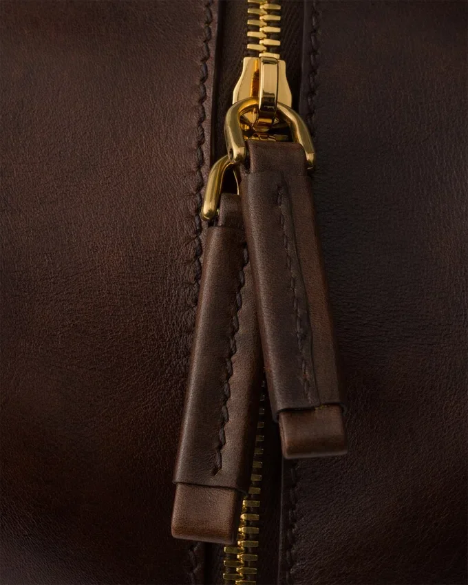This Top-Handle Bag with a Contemporary Shape and Refined Artisan Details is Made of Leather with an Antiqued Finish That Gives the Design Allure and Uniqueness. The Soft, Roomy Accessory Defined by the Zipper Closure is Completed with External Pockets and Long Handles for Casual and Versatile Wear.