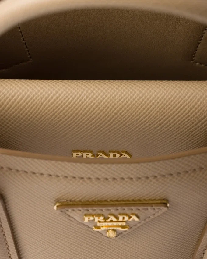 Delicate and Refined Details Give New Life to Iconic Brand Designs Like the Prada Double Handbag, Reinterpreted with a Compact Design. The Tonal Leather Triangle Frames the Iconic Metal Lettering Logo That Gleams on the Front, While the Detachable Shoulder Strap Makes It Possible to Also Wear as a Cross-Body or Shoulder Bag.
