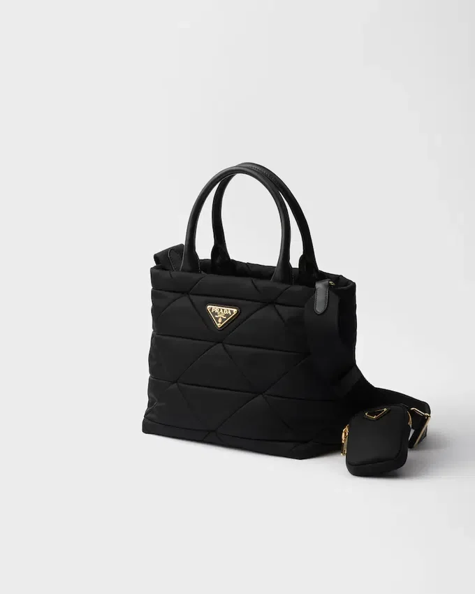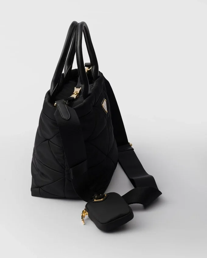The Iconic Geometric Shape of the Prada Triangle is Reinterpreted in the Design of This Compact Tote Characterized by the Quilted Motif. The Re-Nylon Bag Has a Soft Silhouette and Can Be Carried by Hand or Worn with a Shoulder Strap Embellished with a Removable Mini-Pouch. The Versatile and Contemporary Accessory is Decorated with the Iconic Enameled Metal Triangle Logo. For Sustainable Care to Preserve the Product’s Characteristics and Reduce Microfiber Shedding, We Recommend Not Washing the Item Too Often. Let the Product Air out After Every Use and Have It Dry Cleaned at a Specialized Ecological Dry Cleaners.