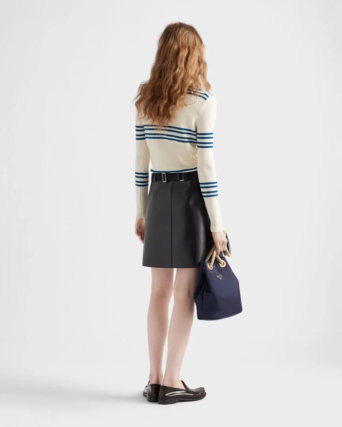 This Leather Miniskirt with Sleek Lines and a Refined Design is Characterized by Its Slightly Flared Cut. The Belt with Metal Buckle from the Archives Enhances the Silhouette with an Iconic and Timeless Touch.