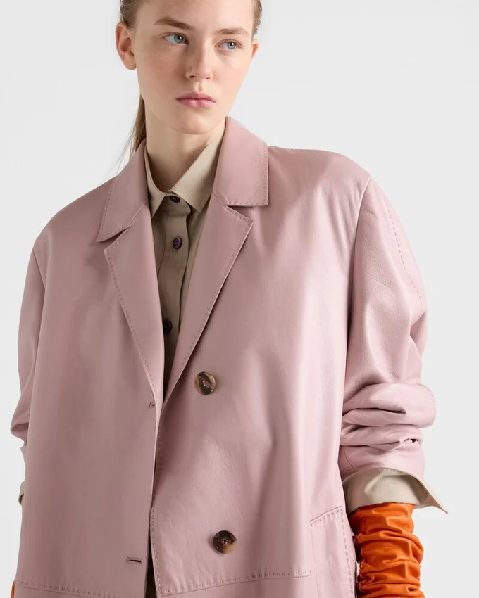 This Coat with a Strong Character and Menswear-Inspired Cut is Softened by Treated Nappa Leather with an Exclusive, Tactile Finish. The Single-Breasted Silhouette is Outlined by Tonal Stitching That Reflects the Sartorial Essence of the Coat with Distinctive Style.