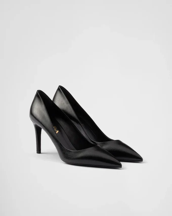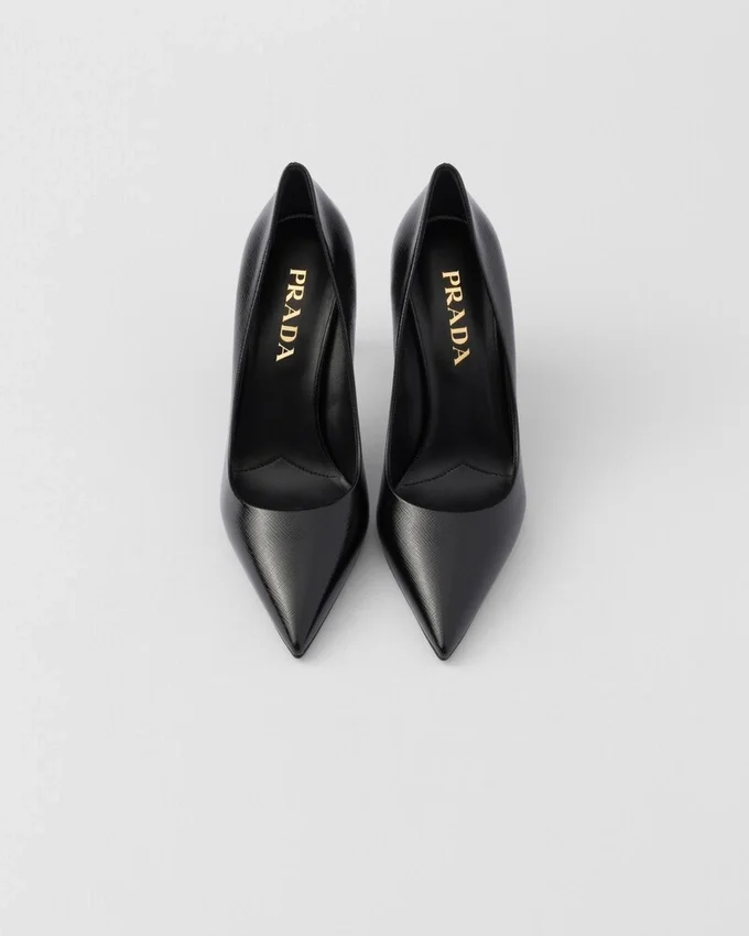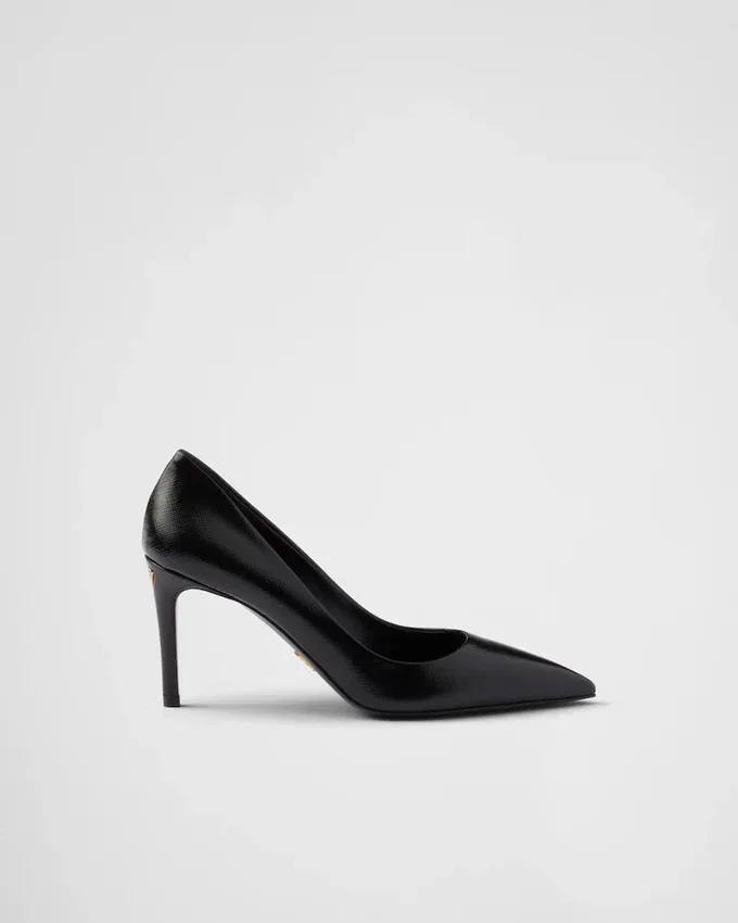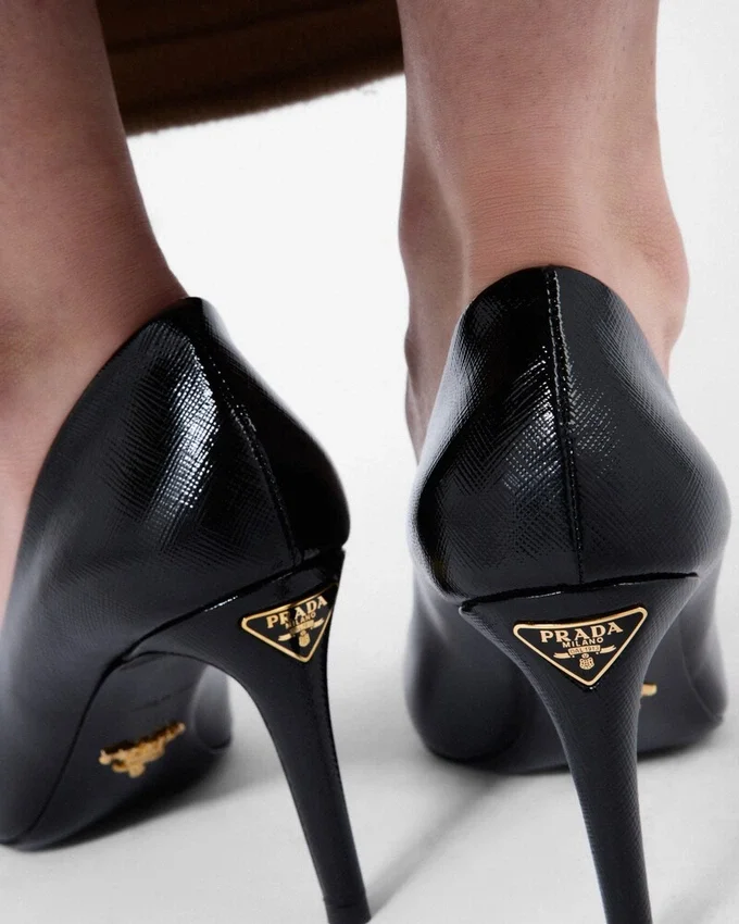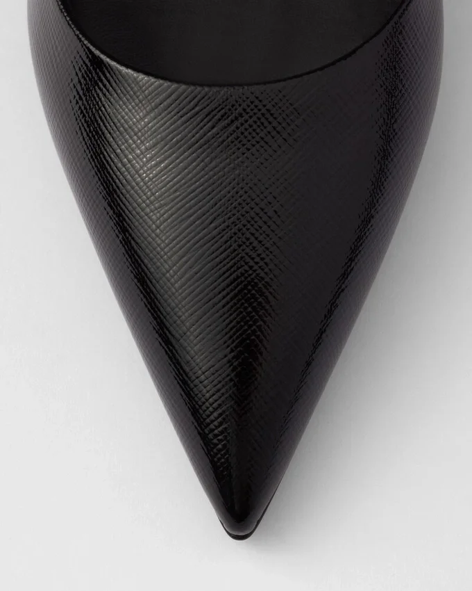 The Feminine Silhouette of These Pumps is Reinterpreted with Contemporary Details That Enhance the Design with Timeless Allure. Tapered Lines Define the Pointy Toe Shoe Enriched by the Exclusive Combination of Iconic Saffiano Leather and the Glossy Varnish Finish.